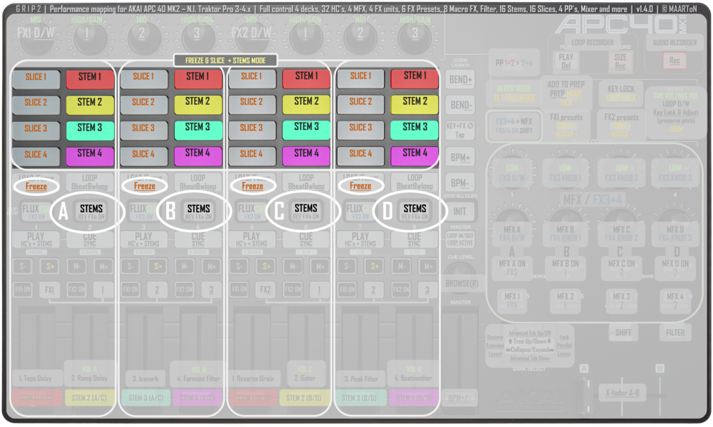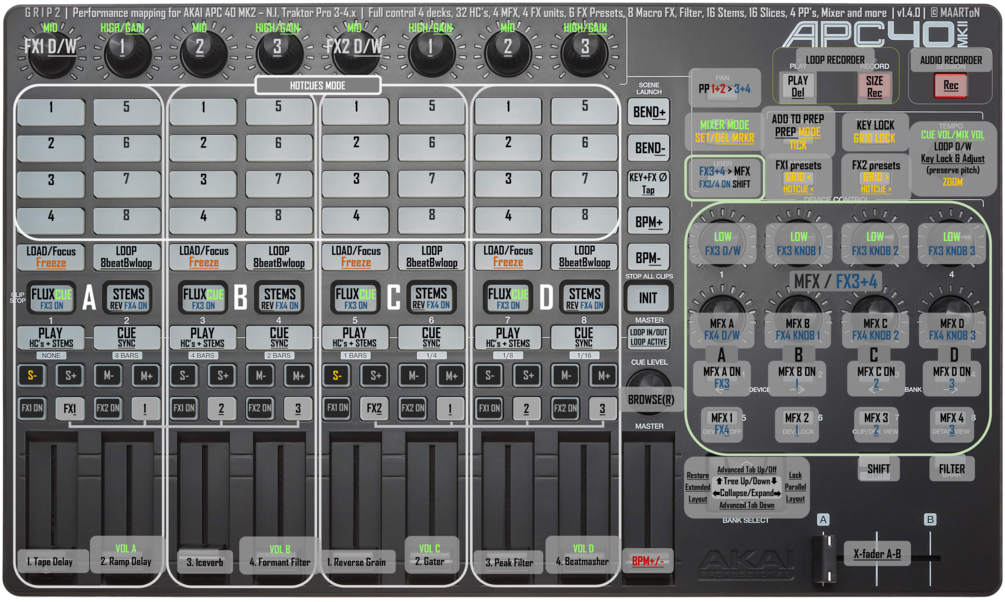 GRIP2 v1.4.0 MAPPING for TRAKTOR PRO 3 + 4 and AKAI APC40 Mk2